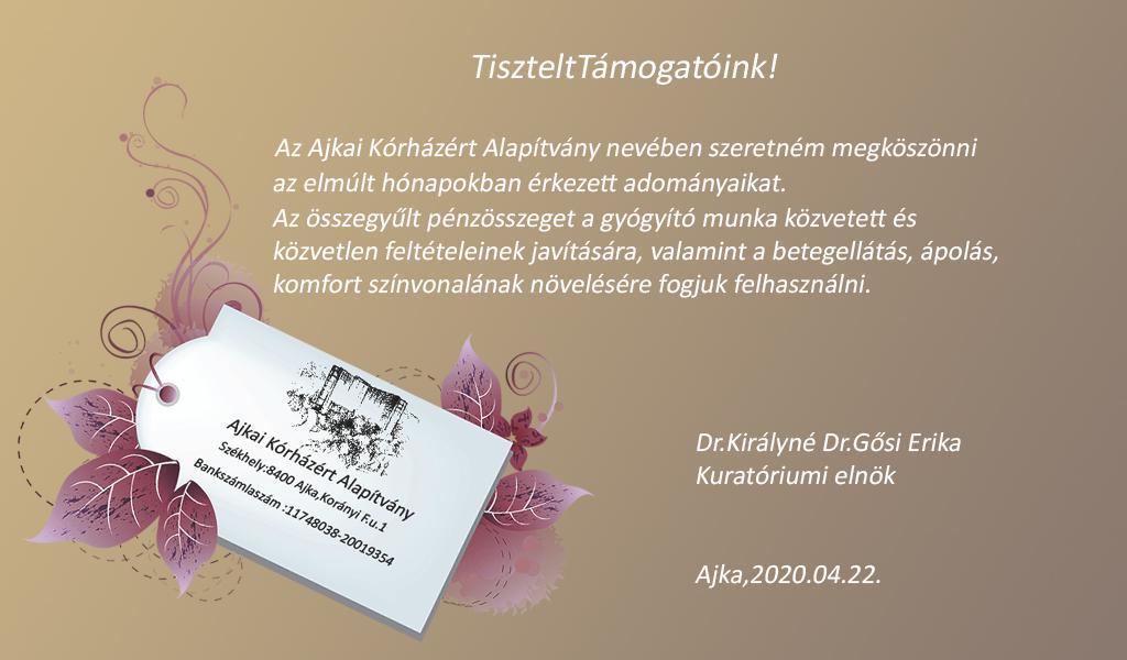 Az Ajkai Kórházért Alapítvány az összegyűlt adományokból, 2db germicid lámpát vásárolt a Magyar Imre Járványkórház részére, közel hétszázezer forint értékben.